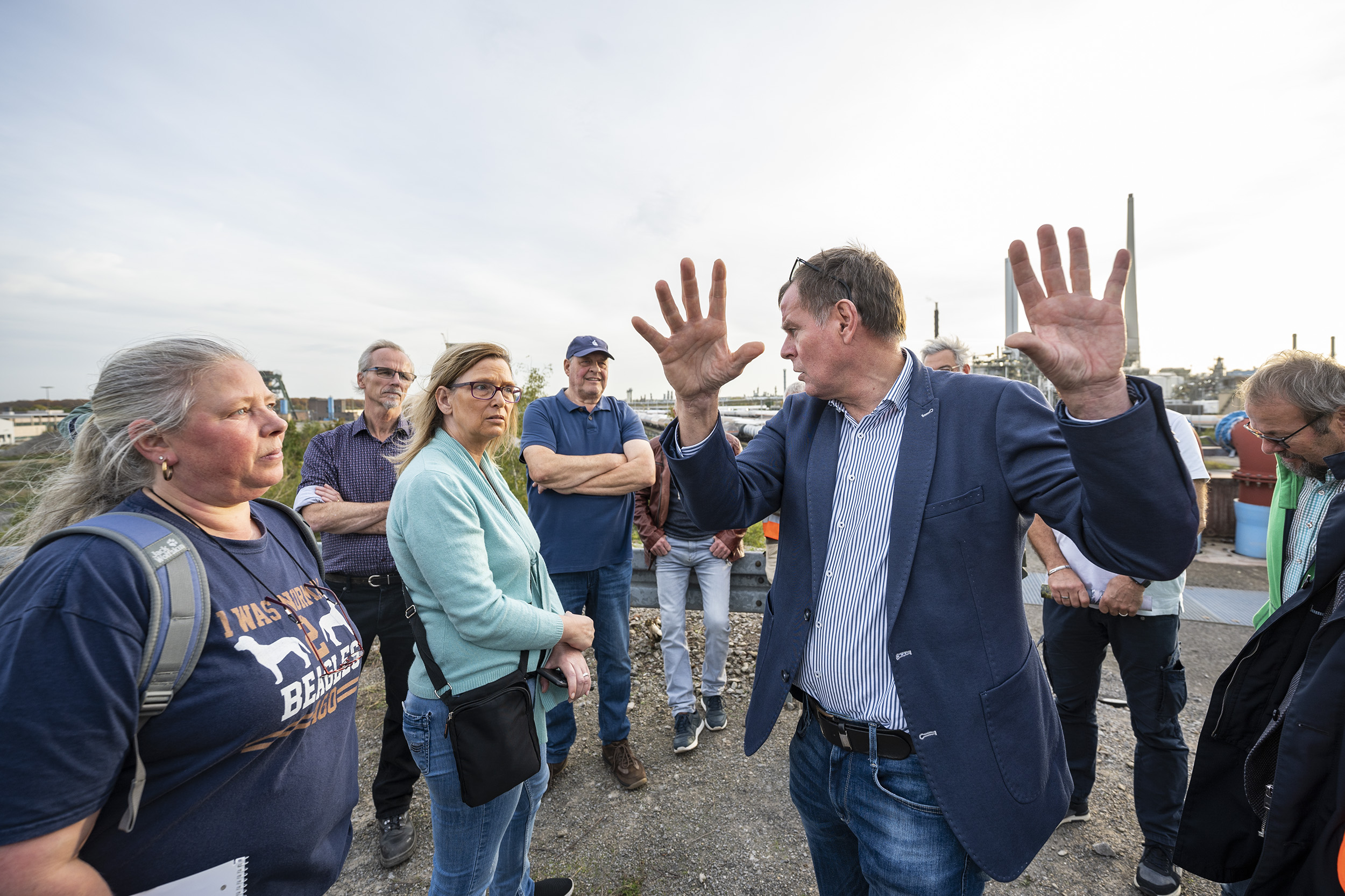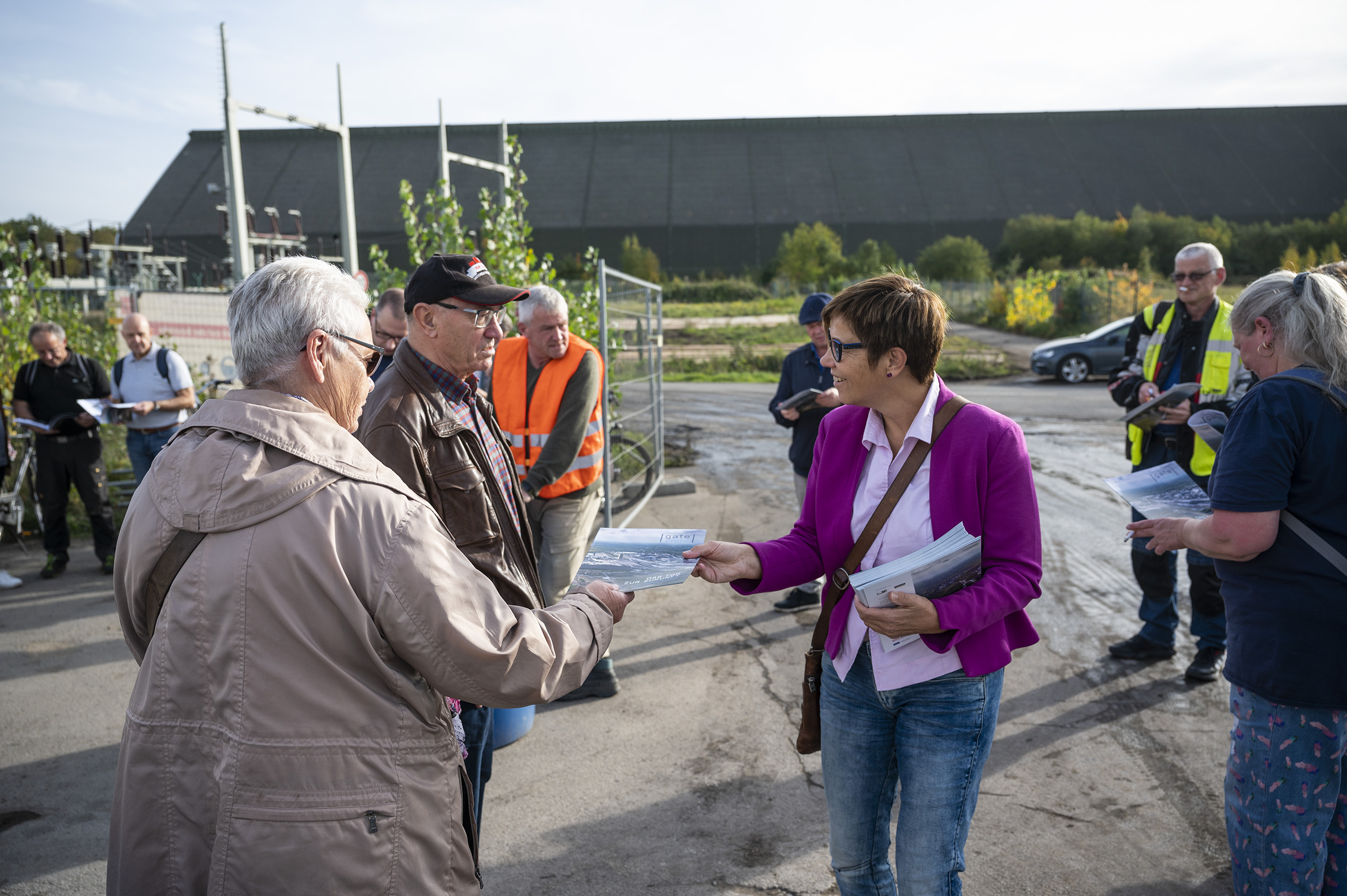 Informationen aus erster HandGeführt wurden sie von den Projektverantwortlichen der gate.ruhr GmbH, der RAG Montan Immobilien GmbH und der Stadtverwaltung, die an drei Stationen eine Fülle von Fragen beantworteten. Im Beisein von Bürger-meister Werner Arndt klang der Nachmittag bei spätsommerlichen Temperaturen mit einem Imbiss auf der Baustelle aus. Die Resonanz war positiv: Die Gäste begrüßten die Möglichkeit, direkt auf der Fläche mit den Verantwortlichen auf Augenhöhe reden zu können, und bedankten sich für das Angebot. Gesamte Flächenentwicklung im FokusDie Baustellenführung nahm die gesamte Flächenentwicklung auf dem ehemaligen Bergwerk Auguste Victoria 3/7 in den Fokus. Deutlich wurde dabei, dass die zweistufig angelegte Entwicklung des Areals vielen Bürgerinnen und Bürger noch nicht vertraut ist: In der ersten Projektphase werden die ehemalige Kraftwerksfläche sowie die nördliche Bergwerksfläche an der Nordstraße von der gate.ruhr GmbH für eine Vermarktung ab 2024 entwickelt. Die Flächen südlich der Bestandsgebäude, die aktuell von der Stadtverwaltung genutzt werden, sind erst nach Abschluss des Rückbaus durch den RAG-Konzern zur Entwicklung vorgesehen. Aufbereitung der Kraftwerksfläche ist im vollen GangeDie interessierten Bürgerinnen und Bürger hatten sich am Baucontainer an der Nordstraße getroffen, wo die Aufbereitung der ehemaligen Kraftwerksfläche bereits im vollen Gange ist. Seit dem Baustart im Mai wurden rund 10 Hektar aufbereitet, so dass die schiere Größe der Fläche unmittelbar ins Auge fällt. gate.ruhr-Geschäftsführer Volker Duddek berichtete, dass die Fläche jetzt um etwa 2,5 Meter aufgefüllt werde – teils mit Böden, die beim Aushub der neuen Regenrückhaltebecken gewonnen wurden, damit zusätzliche Lkw-Fahrten eingespart werden. Parallel dazu prüft die gate.ruhr GmbH gemeinsam mit der ausführenden Baufirma Heitkamp, ob weitere Bodenlieferungen künftig über den Kanal transportiert werden können. „Das wäre für die Anwohner die beste Lösung“, so eine Teilnehmerin. Aktuell fahren im Schnitt 40 Lkw pro Tag die Flächen an. Erschließungsmaßnahmen für das Gesamtareal vorweggenommenEin weiterer Anlaufpunkt war das Regenrückhaltebecken, an dem Georg Wiebringhaus, Projektkoordinator und Prokurist der gate.ruhr GmbH, die Infrastrukturmaßnahmen vorstellte – darunter den Ausbau der Carl-Duisberg-Straße zur Allee mit Radwegen auf beiden Seiten und zwei Kreisverkehren. Wichtig: Alle aktuellen Infrastrukturmaßnahmen wie Straßenbau, Tiefbau und Entwässerung sind so ausgelegt, dass die Erschließung des gesamten Areals (Entwicklungsphase 1 und 2) vorweggenommen wird. So werden alle erforderlichen Leitungen, Kabel und Glasfaser schon jetzt in Versorgungskanäle entlang der Straße gelegt. „Wir gehen das bewusst in einem Schritt an, damit in der zweiten Projektphase nicht erneut Bauarbeiten auf der Carl-Duisberg-Straße erforderlich werden“, sagte Bürgermeister Werner Arndt. Mehrere Fragen zielten auf den Lärmschutz. So berichteten Anwohnerinnen und Anwohner der Zollvereinssiedlung, dass die Lärmbelastung durch die nahe Autobahn und den Chemiepark schon heute hoch sei. Die Verantwortlichen für den Rückbau versprachen, die bestehende Lärmschutzwand möglichst zu erhalten und eine spätere Erweiterung im Süden der Bergwerksfläche zu prüfen. Interesse am energetischen KonzeptViele Teilnehmerinnen und Teilnehmer interessierten sich auch für das energetische Konzept: „Ein großer Vorteil ist, dass wir künftigen Nutzern Fernwärme, Gas und sogar Wasserstoff anbieten können – es ist alles vorhanden“, erklärte Volker Duddek. Bürgermeister Werner Arndt ergänzte: „Wir planen hier ein sehr sauberes, sehr innovatives Industriegebiet. Das bedeutet heute auch, dass die Firmen ihre Energieversorgung zu großen Teilen auf regenerative Quellen stützen werden – von Solarenergie auf dem Dach bis zu Wärmepumpen und Regenwassernutzung.“ Blick auf den zweiten EntwicklungsabschnittAuf einer Anhöhe mit Blick auf die südlichen Flächen, die noch unter Bergrecht stehen, erläuterten Robert Bures und Thomas Middelmann von der RAG Montan Immobilien GmbH den Stand der Rückbauarbeiten: Im Rahmen des Abschlussbetriebsplan-Verfahren (ABP) hat der Bergbau hier die Verpflichtung, alle Flächen wieder in den ursprünglichen Zustand zu bringen und verkehrsfähig zu machen. Erst danach werden die Flächen aus der Bergaufsicht entlassen und können über ein separates Bauleitverfahren einer neuen Nutzung zugeführt werden. Dann werden auch die Bürgerinnen und Bürger im Rahmen der frühzeitigen Bürgerbeteiligung zur Aufstellung des Bebauungsplanes erneut ihre Ideen einbringen können. Als Grundsatz gilt, dass die südlichen Flächen für kleinteilige Gewerbeansiedlungen wie Handwerk und produzierendes Gewerbe mit geringen Emissionen vorgesehen sind. 1.000 zusätzliche Arbeits- und AusbildungsplätzeAuf dem Gelände der ehemaligen Schachtanlage Auguste Victoria 3/7 wollen die Stadt Marl und die RAG Montan Immobilien GmbH als Entwicklerin für Bergbauflächen innovative Unternehmen ansiedeln. Dort sollen in den nächsten Jahren bis zu 1.000 zusätzliche Arbeits- und Ausbildungsplätze entstehen und vor allem nachfolgenden Generationen neue Zukunftsperspektiven eröffnen. „Durch das Ende des Bergbaus in Marl sind Tausende Industriearbeitsplätze weggefallen“, sagt Marls Wirtschaftsförderer Dr. Manfred Gehrke. „Wenn junge Familien in Marl wohnen, arbeiten und einkaufen sollen, dann brauchen wir dringend neue Arbeitsplätze“.